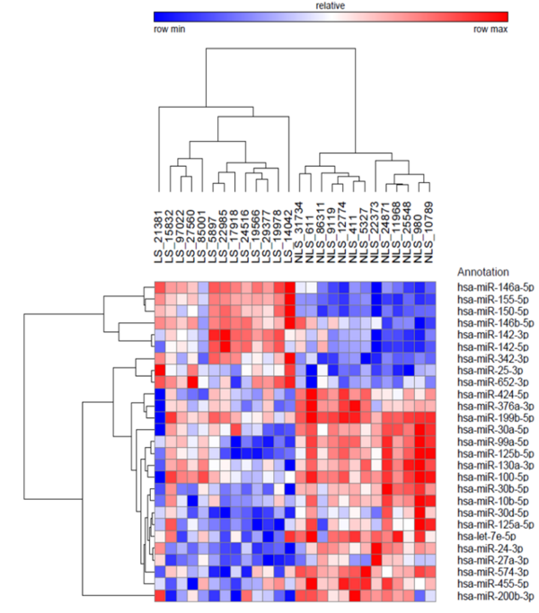 To the left, you'll see an image focusing on a panel MicroRNA expressions in lichen sclerosus and nonlichen sclerosus RNA samples. MircoRNAs are a focus of our Translational Research lab.