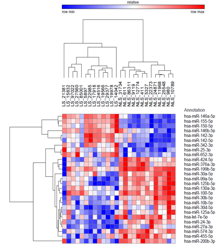 To the left, you'll see an image focusing on a panel MicroRNA expressions in lichen sclerosus and nonlichen sclerosus RNA samples. MircoRNAs are a focus of our Translational Research lab.